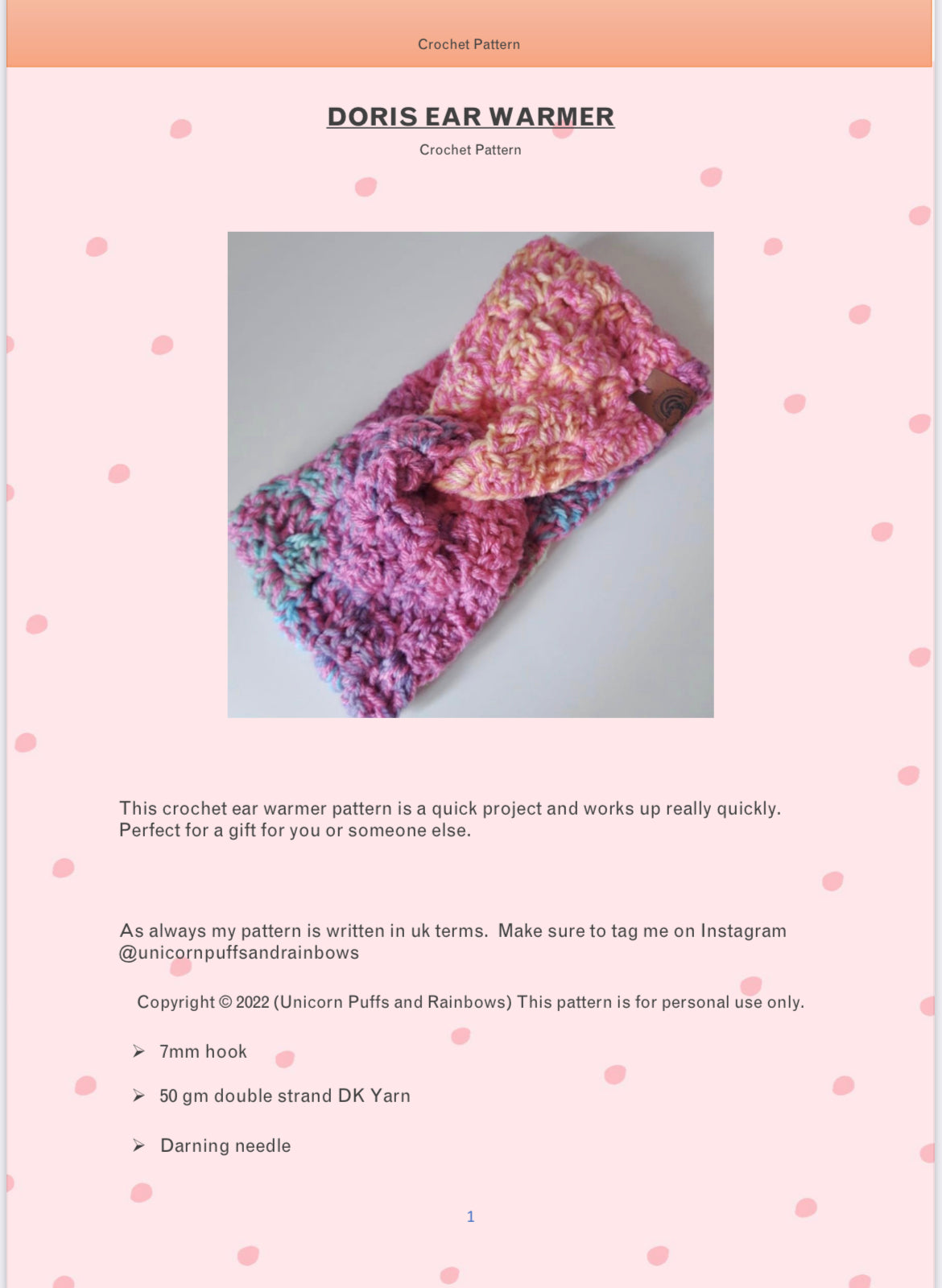 Crochet Doris Ear Warmer Pattern - Digital Download - UK Terms