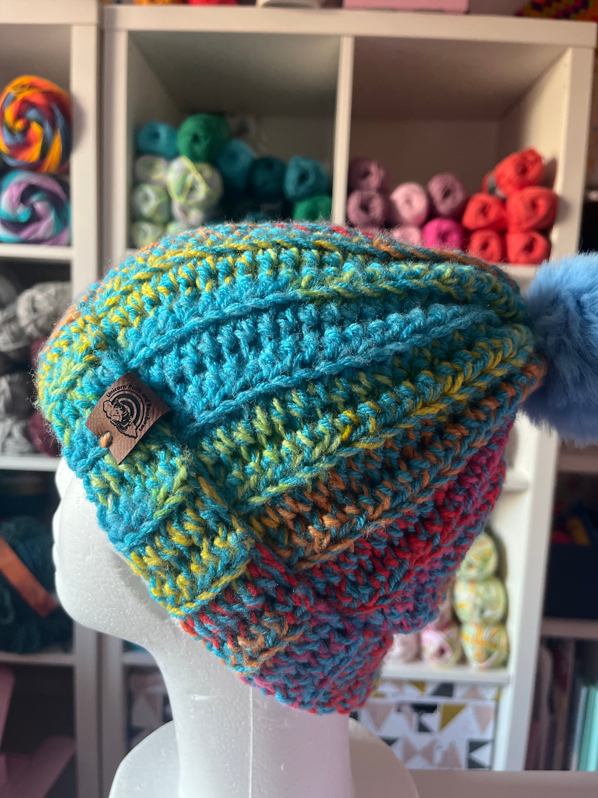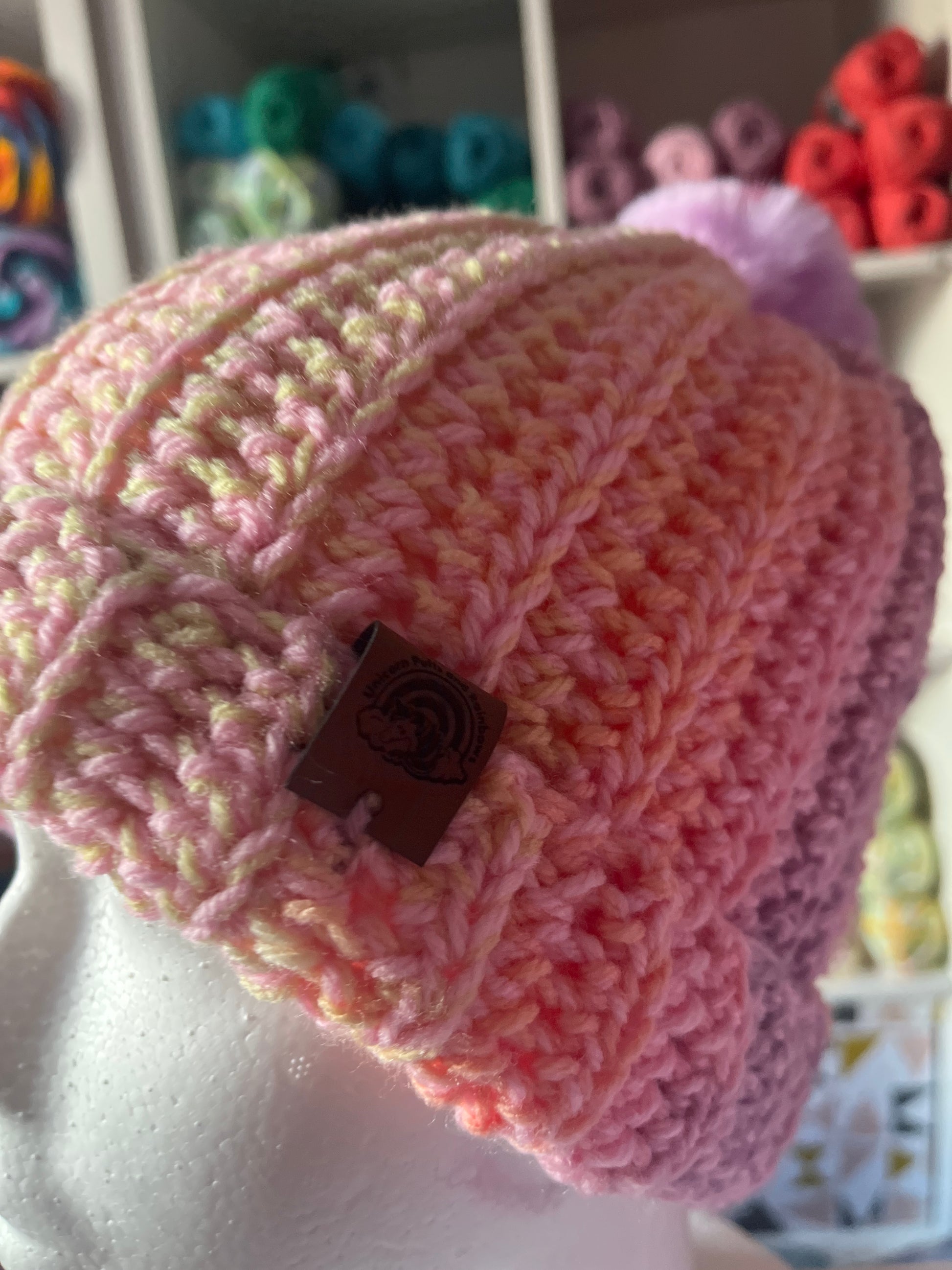 Each hat is finished with a vegan leather tag, adding a modern and eco-conscious touch. The yarn is hypoallergenic, cruelty-free, and easy to care for, so you can enjoy both comfort and convenience.