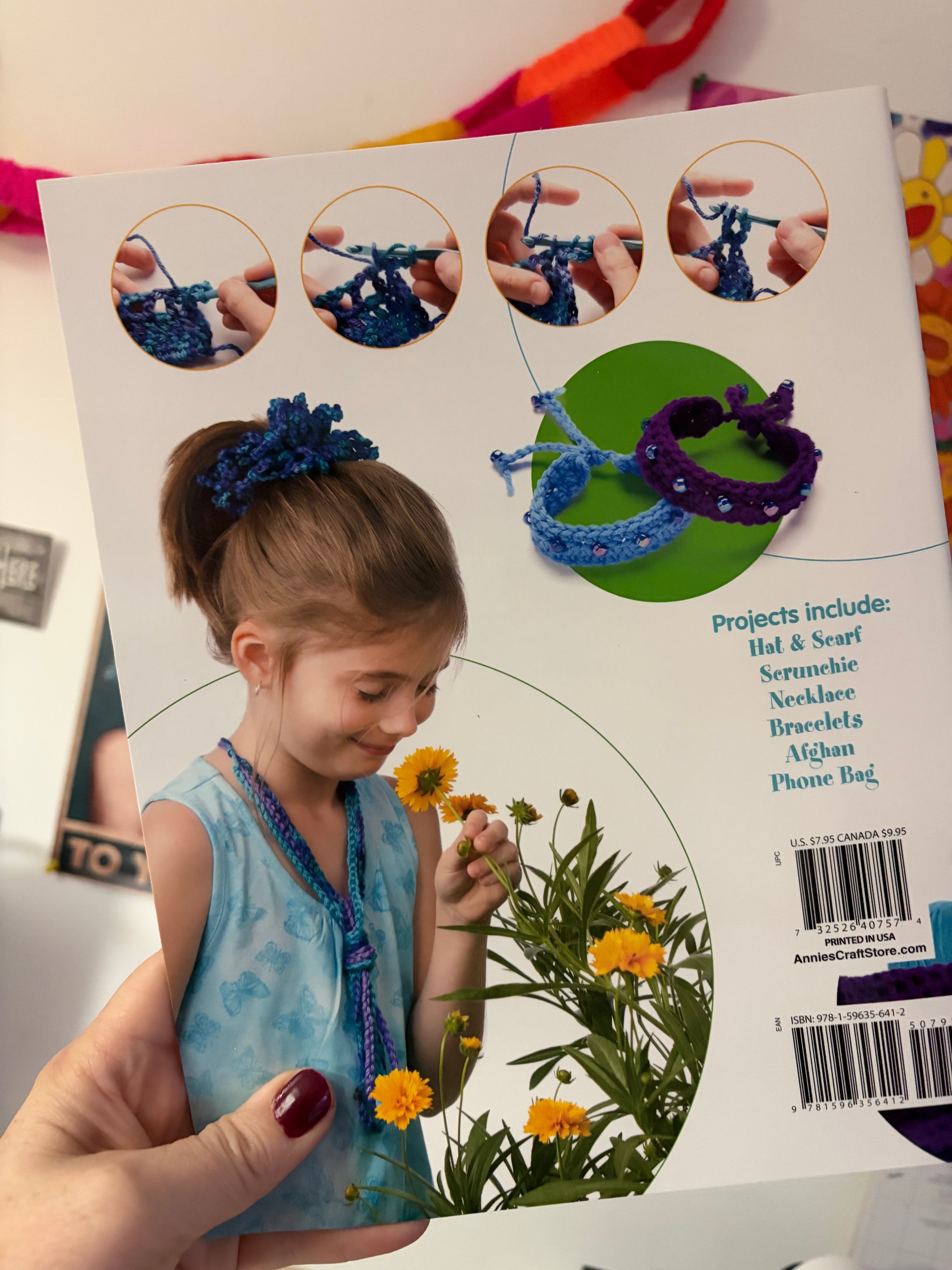 The child’s guide to Crochet the projects include a hat and scarf, scrunchie necklace bracelets, Afghan bag